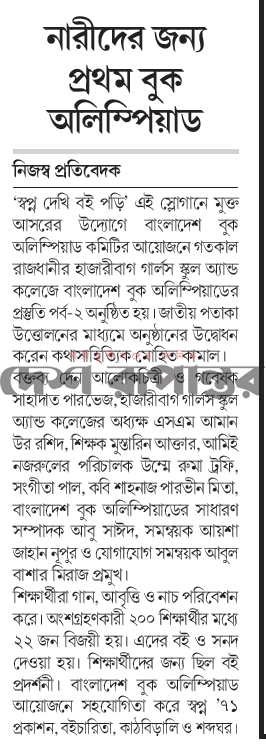 হাজারীবাগে প্রথম নারীদের জন্য বাংলাদেশ বুক অলিম্পিয়াড